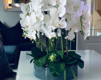 Large White Orchid Arrangement Artificial Flowers Silk Etsy Canada